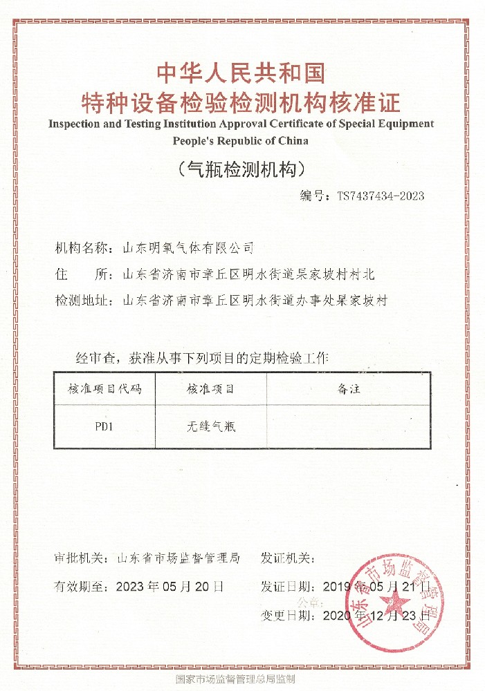 ??? 山東明氧氣體有限公司的前身為始建于1993年的章丘市明水氧氣廠,2020年12月企業(yè)由民營獨資轉(zhuǎn)型升級為山東明氧氣體有限公司,企業(yè)進入新的發(fā)展階段。公司位于山東省濟南市章丘區(qū)明水街道杲家坡村村北,占地面積4000平方米,注冊資金500萬元,固定資產(chǎn)投資3000萬元,主要經(jīng)營項目為醫(yī)用氧氣、工業(yè)氧氣、氮氣、高純氮氣、氬氣、高純氬氣、高純氦氣、二氧化碳、混合氣體等各種工業(yè)氣體、高純氣體、混合氣體的充裝銷售、各類氣瓶的銷售、安全閥校驗、鋼質(zhì)無縫氣瓶的檢驗等。